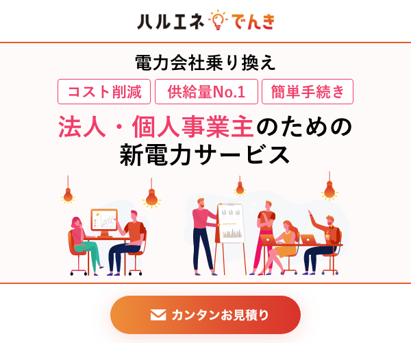 ハルエネでんきは、主に店舗・オフィス・法人向けの電力サービスを提供する新電力会社です。