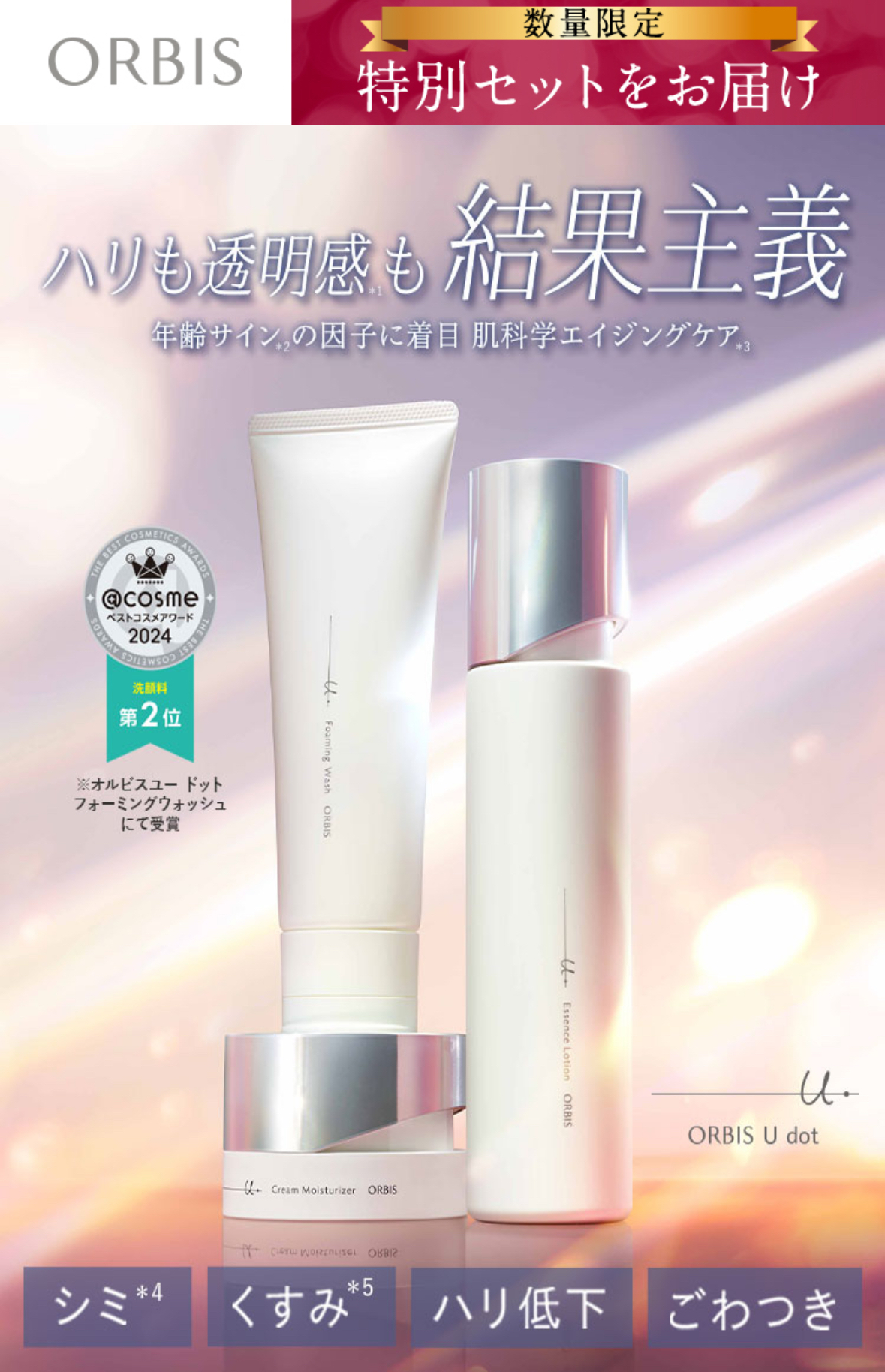 多くのエイジングケア化粧品が、乾燥やハリ不足といった「起きてしまった悩み」に対処しようとする中で、オルビスユー ドットのアプローチは一味違います。